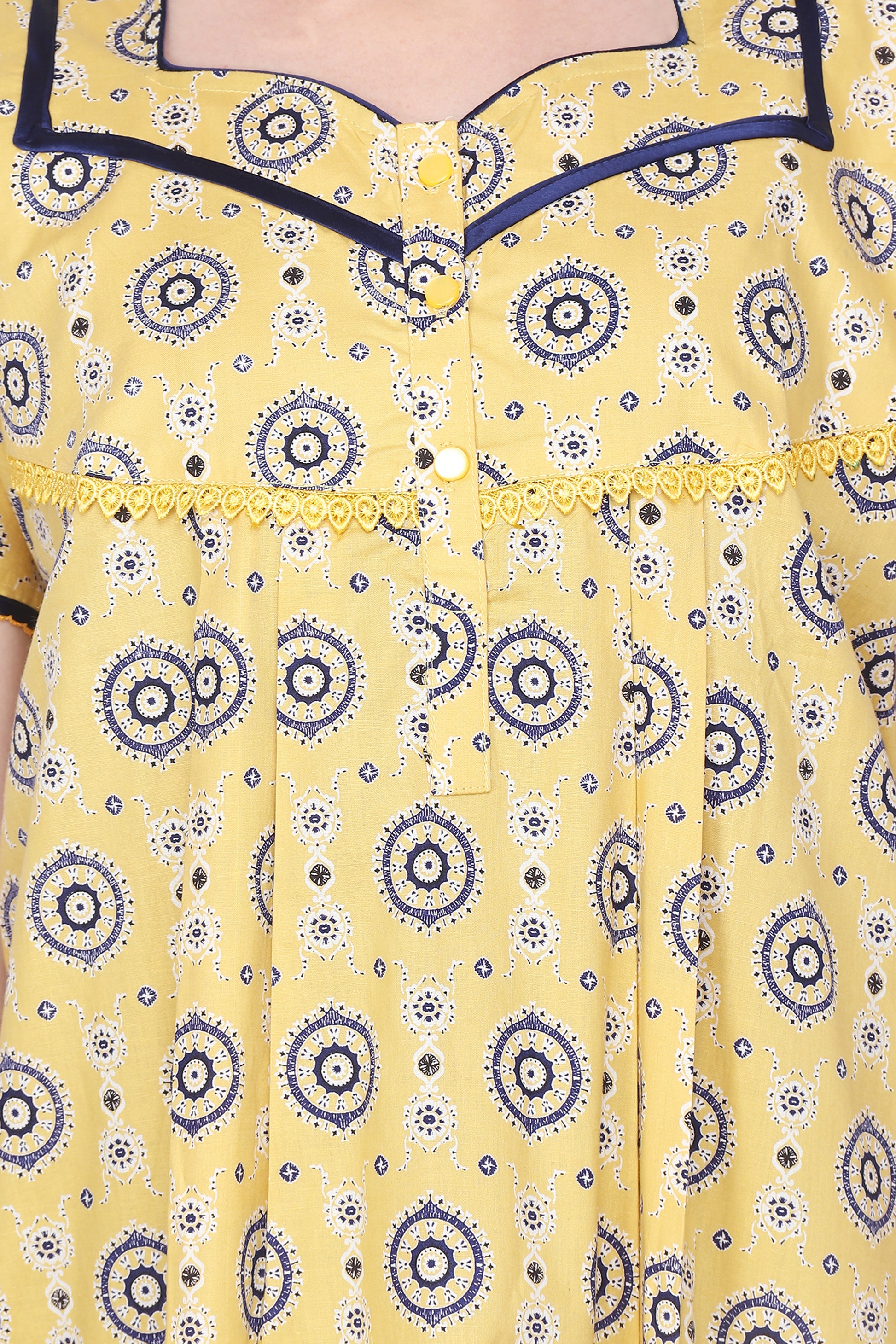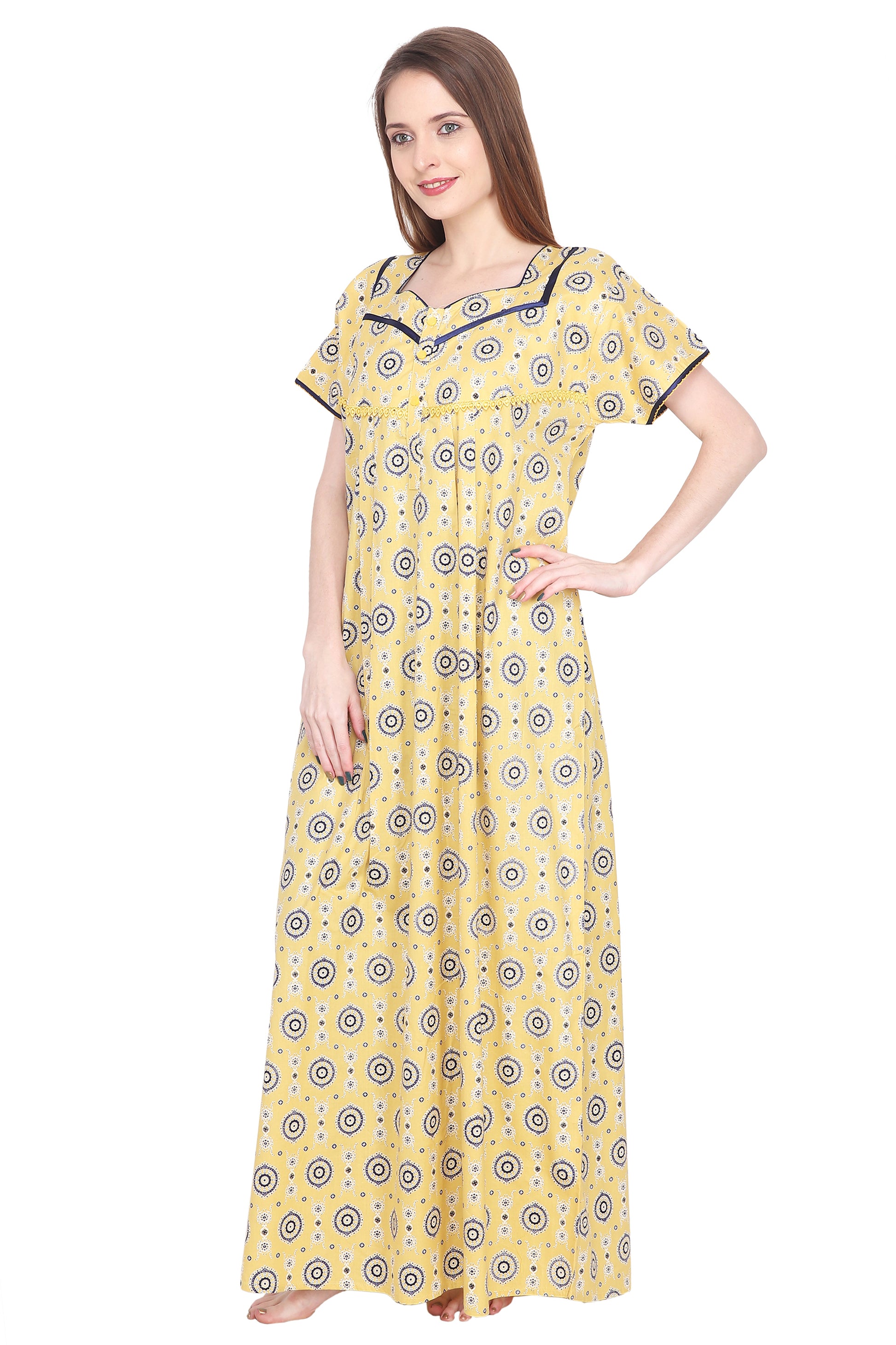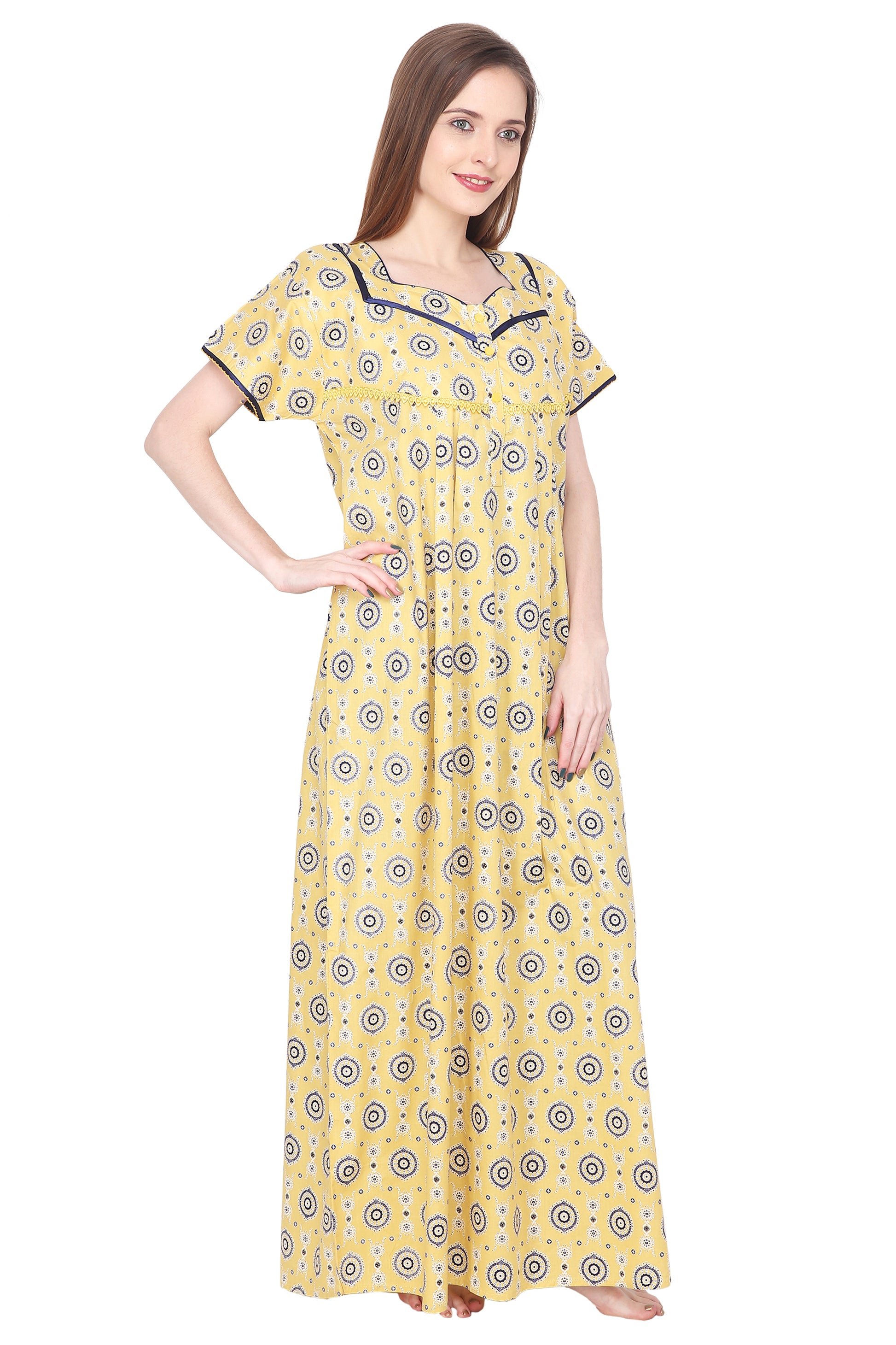 Printed Cotton Procian Ladies Night Gown with Pocket